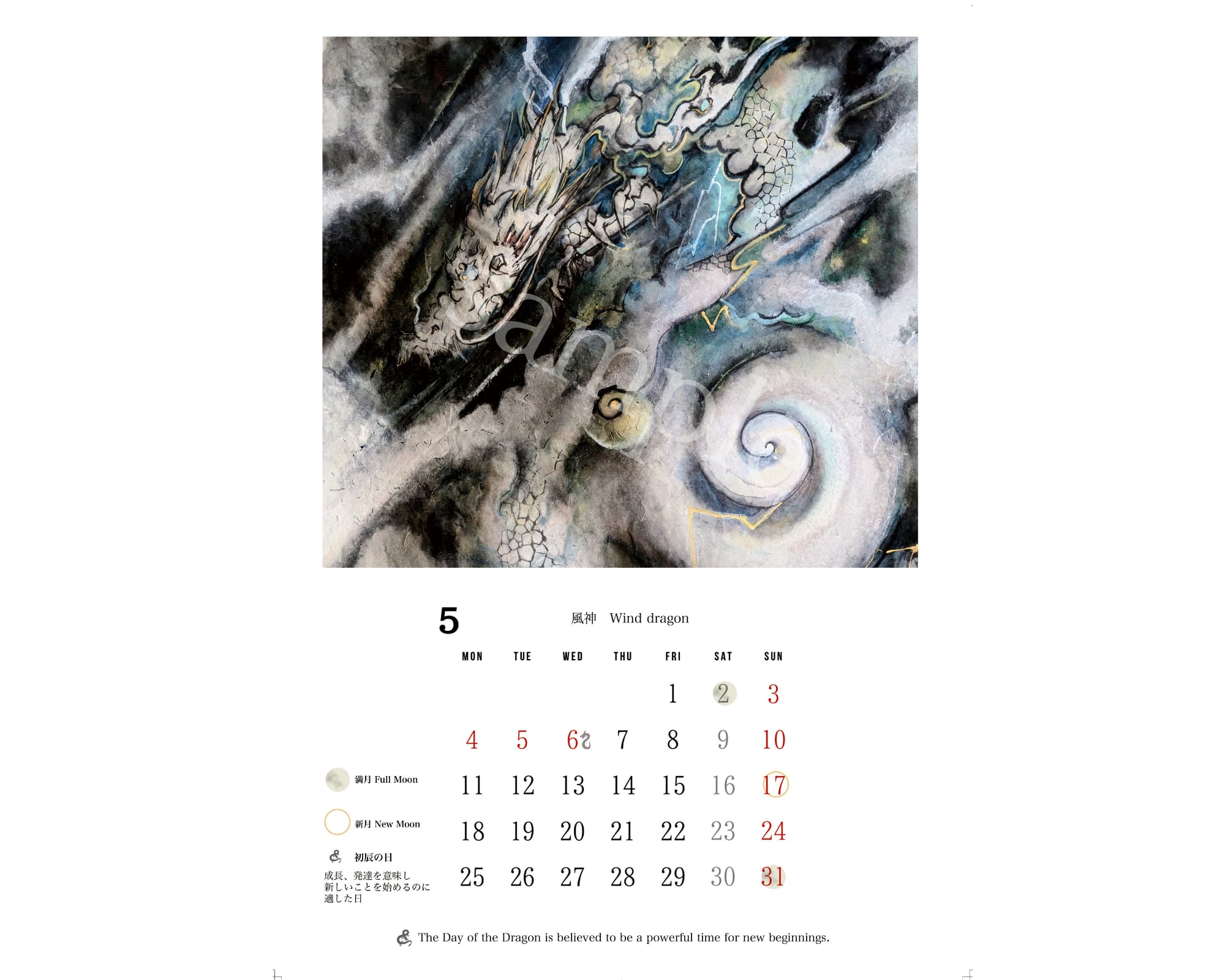 2026年(令和8年) 龍神カレンダー【A4/見開きA3/壁掛け】